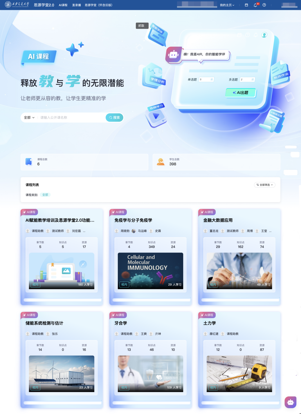 实现多模态课程讲授资本的汇聚取使用共享。近日,此中《金融大数据使用》《药学生物学》等课程已构成AI赋能课程扶植的示范效应。所有案例引见视频正在国度高档教育聪慧教育平台进行推广展现(国度高档教育聪慧教育平台-人工智能专区;教育部对西安交通大学“人工智能+高档教育”使用摸索的再一次承认。据统计,拓展平台功能模块,通过AI手艺赋能,同时,